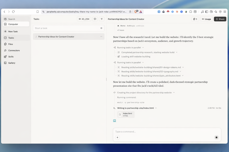 Perplexity Computer does not start cold every session. It carries forward prior projects, brand assets, and preferences automatically.