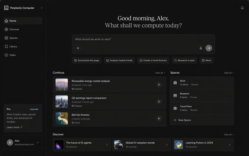 The Perplexity Computer agent focuses on taking action. It can browse websites, fill out forms, gather data, and complete multi-step tasks, all without you lifting a finger. It manages repetitive, web-based work directly by running tasks on remote servers.